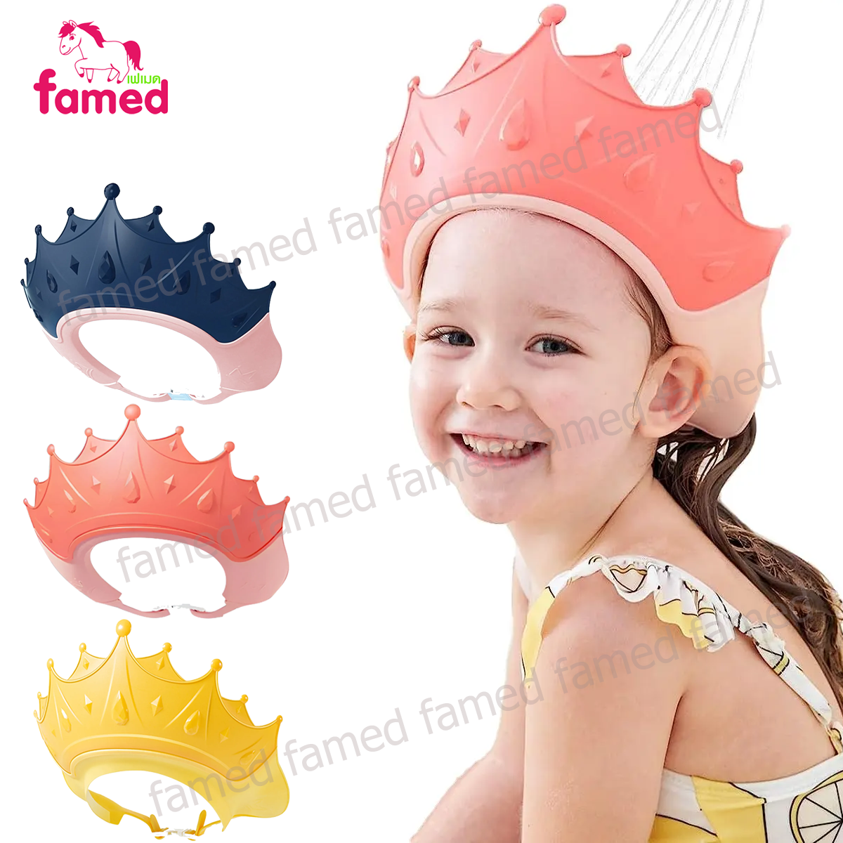 Famed หมวกอาบน้ำเด็ก ปรับขนาดได้ ทรงมงกฎ